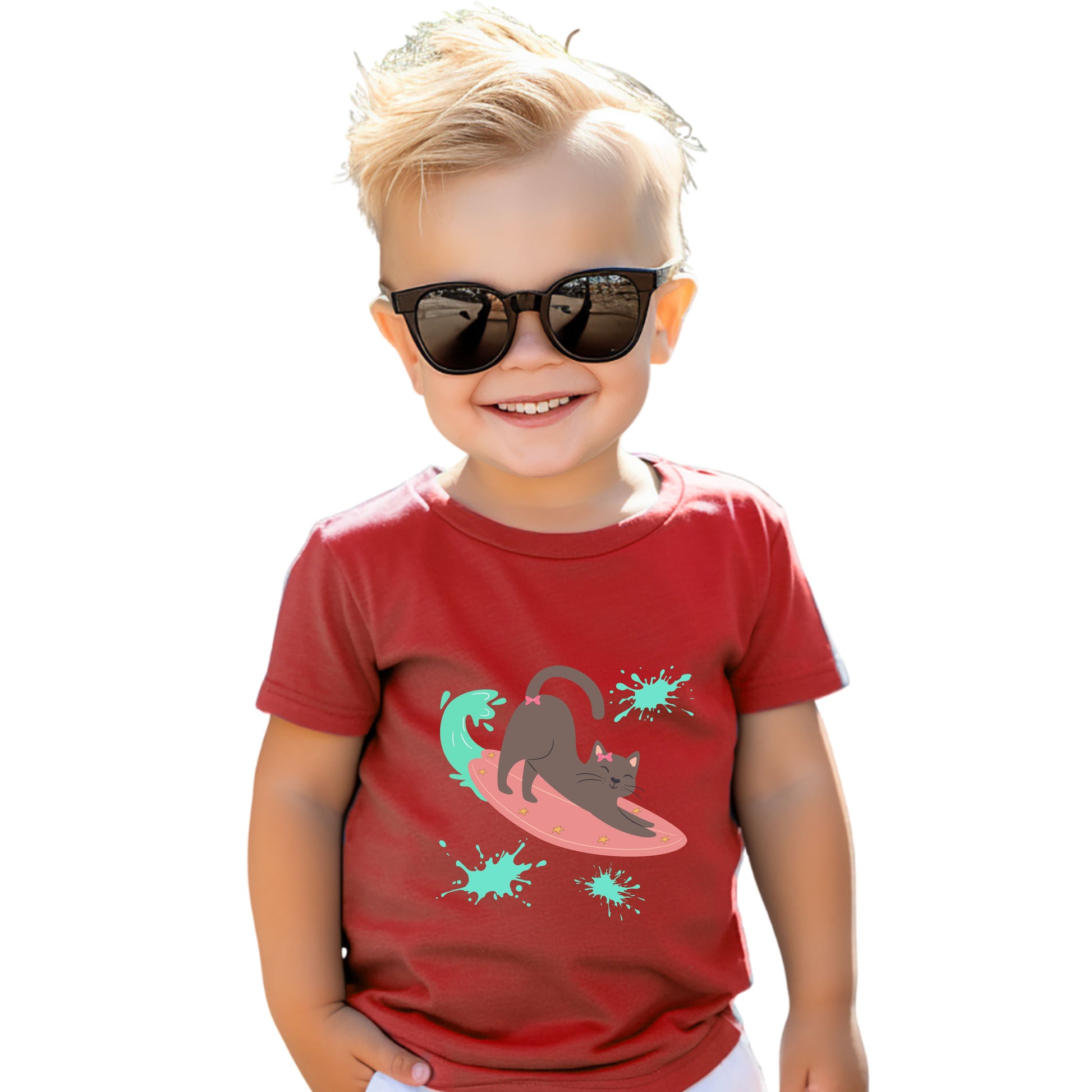 Surfing Cat Toddler Tee, Cute Kids T-Shirt, Summer Wear, Pet Lover Gift, Beach Adventure Shirt
