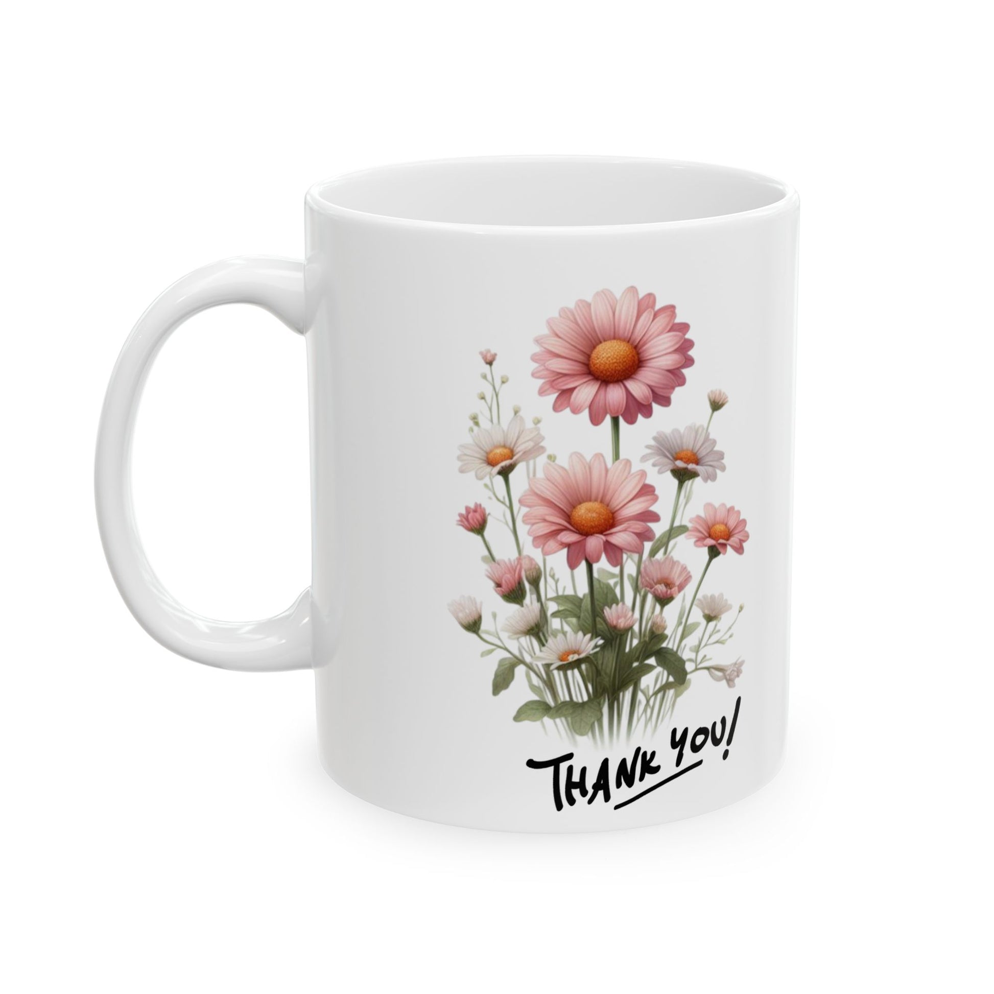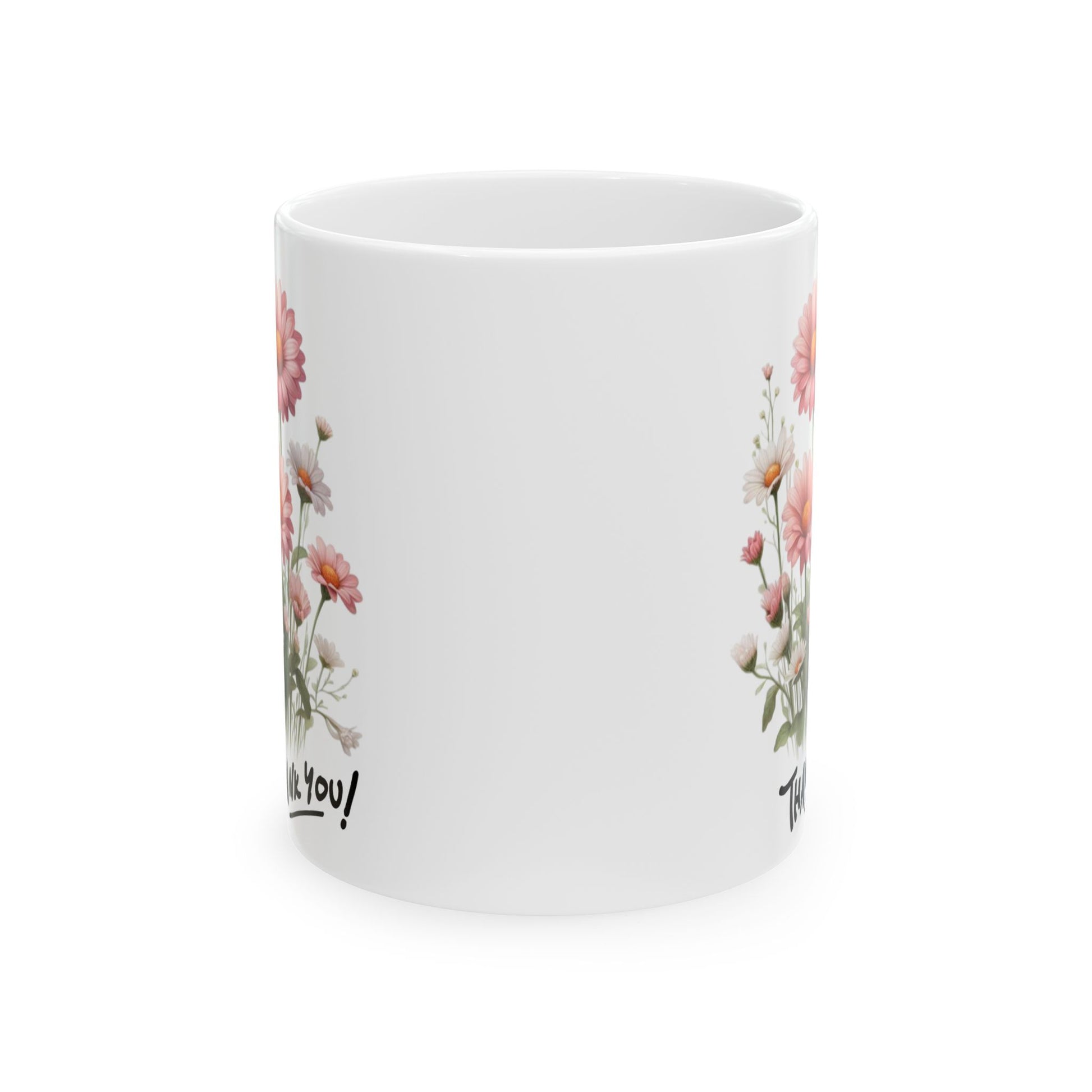 Thank You Floral Ceramic Mug (11oz & 15oz) — Pink Bouquet Appreciation Gift