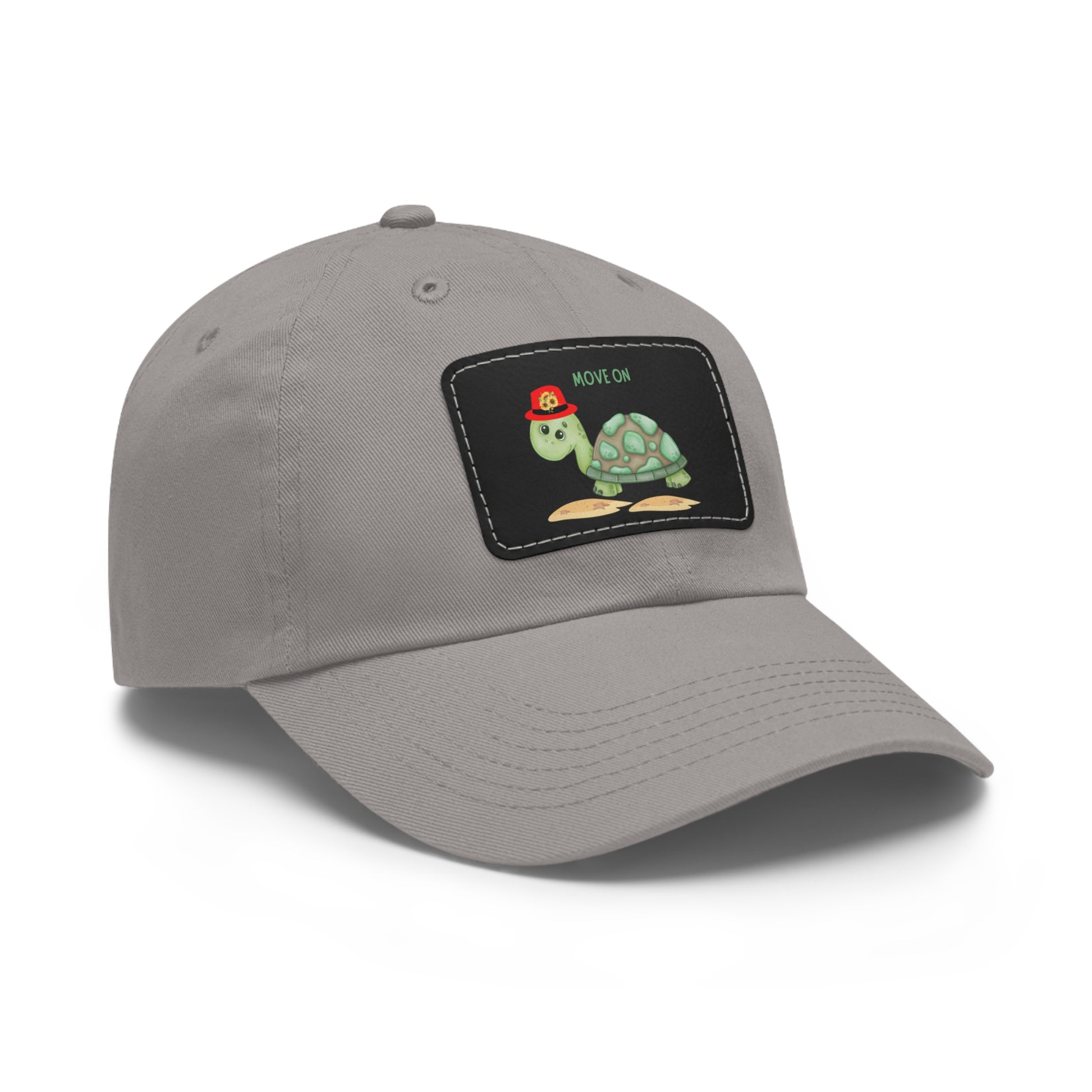 Turtle with a sunflower hat Dad Hat with Leather Patch (Rectangle)