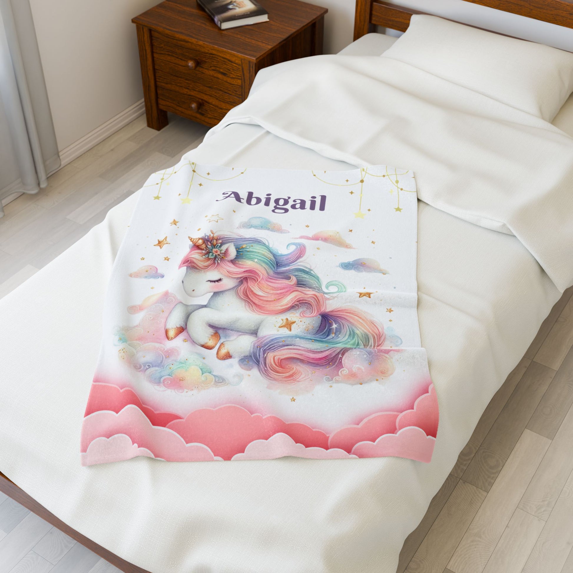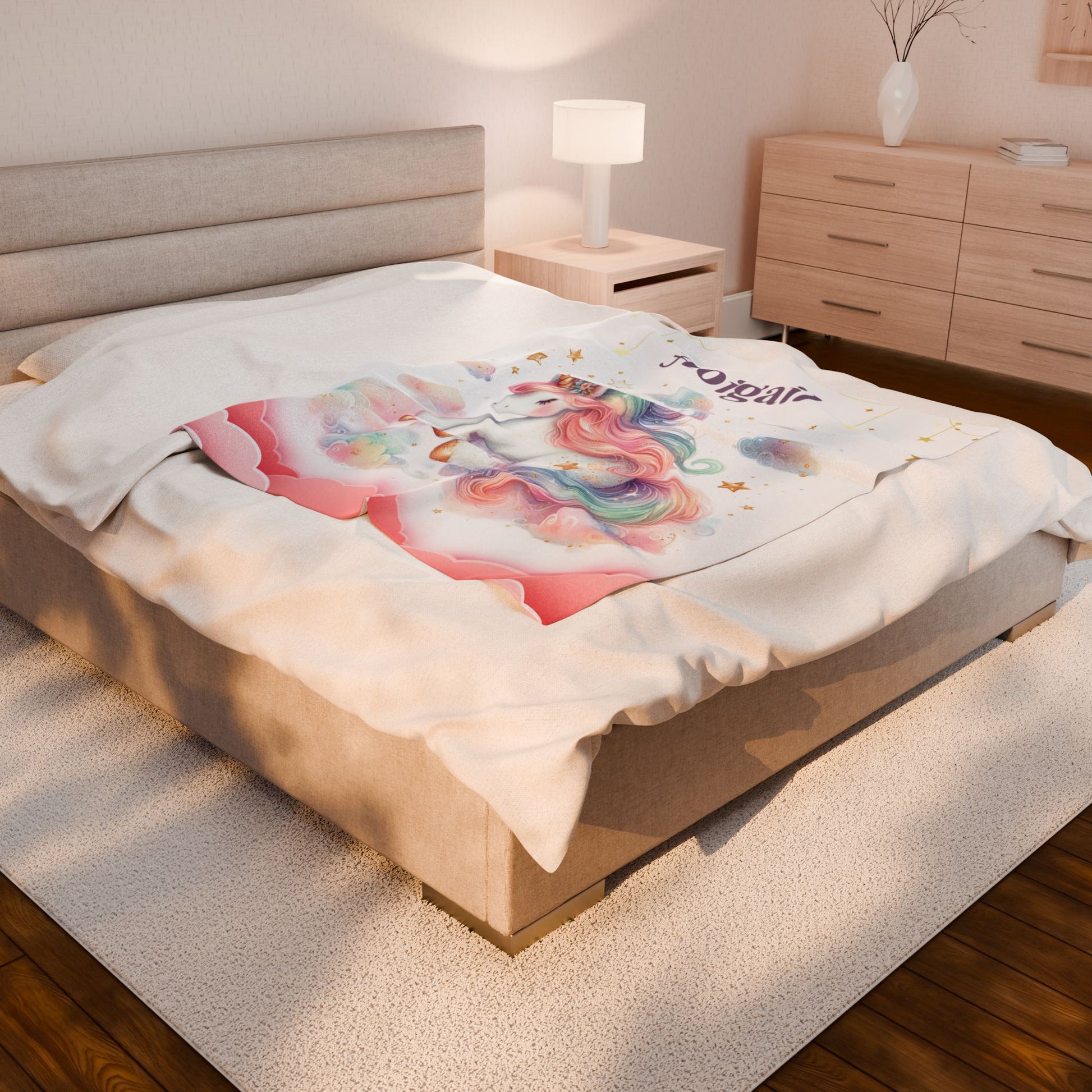 Unicorn Dream Velveteen Blanket, Personalized Cozy Blanket, Baby Shower Gift, Kids Room Decor, Magical Unicorn Gift