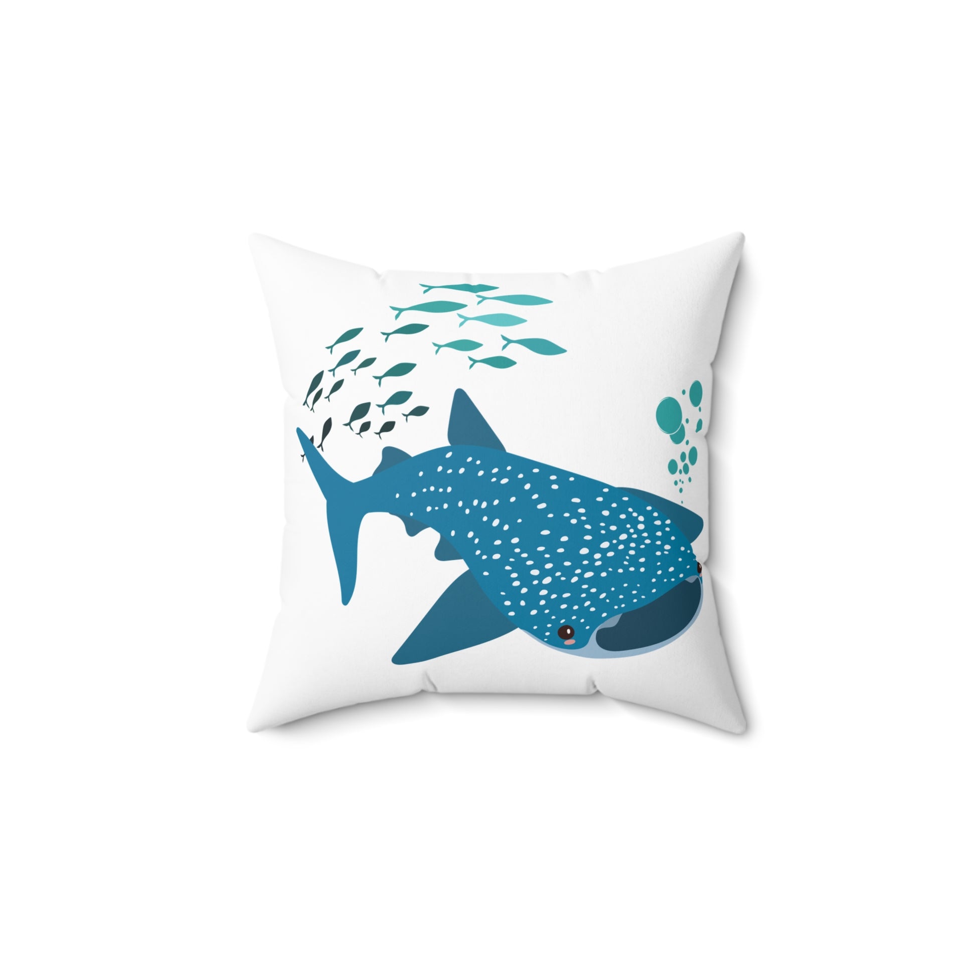 Whale Shark school of fish and buddles Spun Polyester Square Pillow