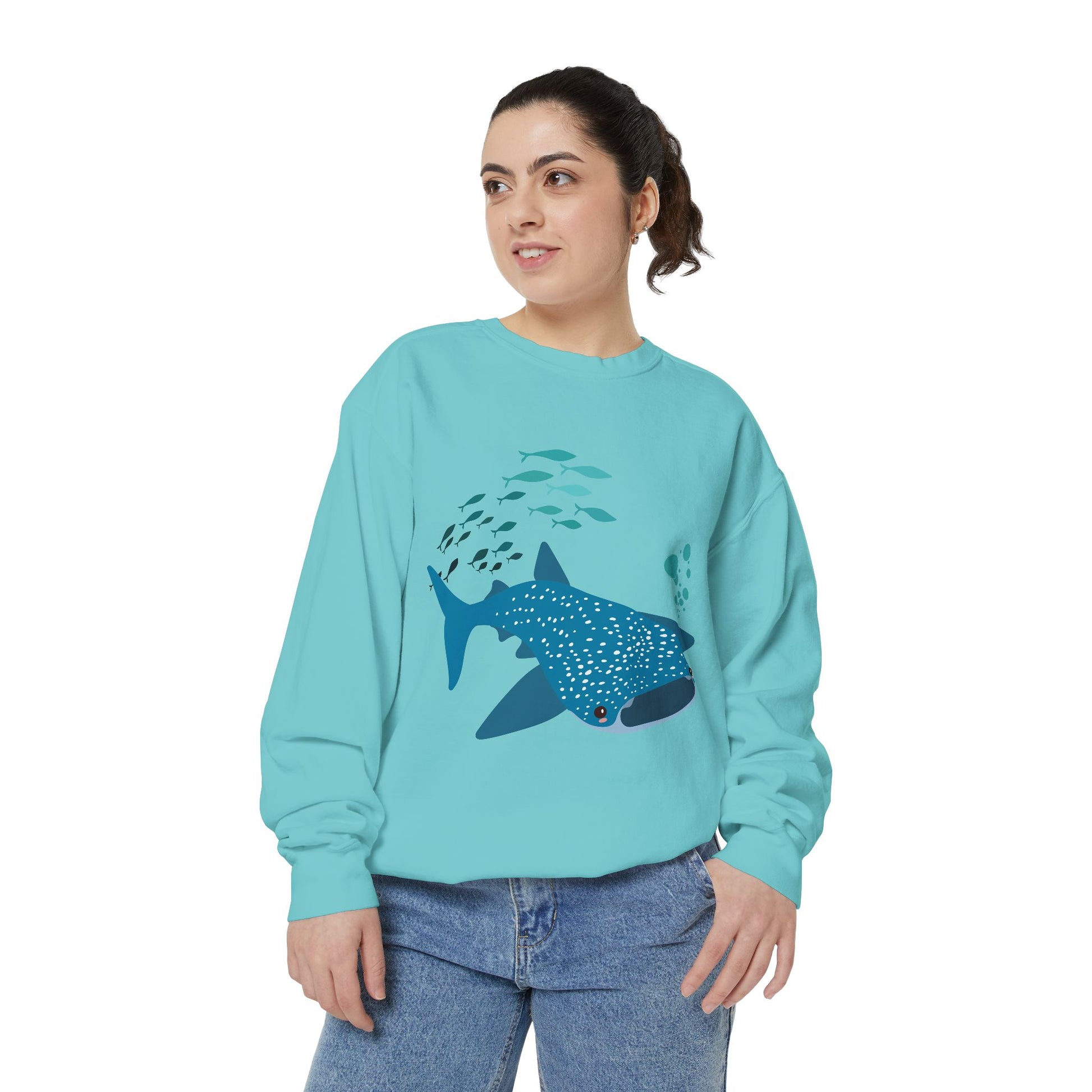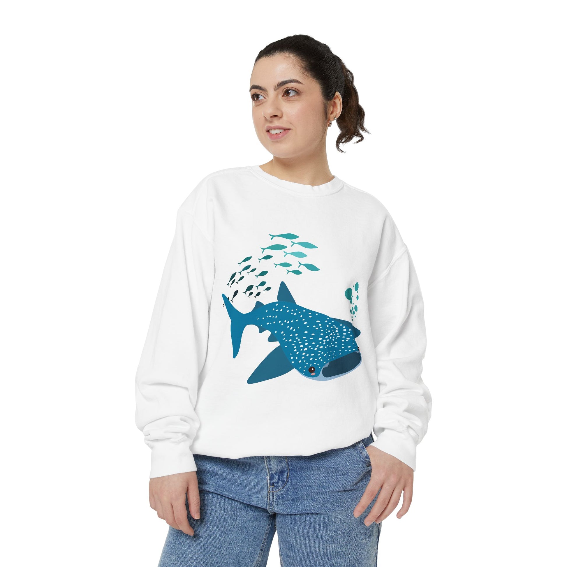 Whale Shark school of fish and buddles Unisex Garment-Dyed Sweatshirt