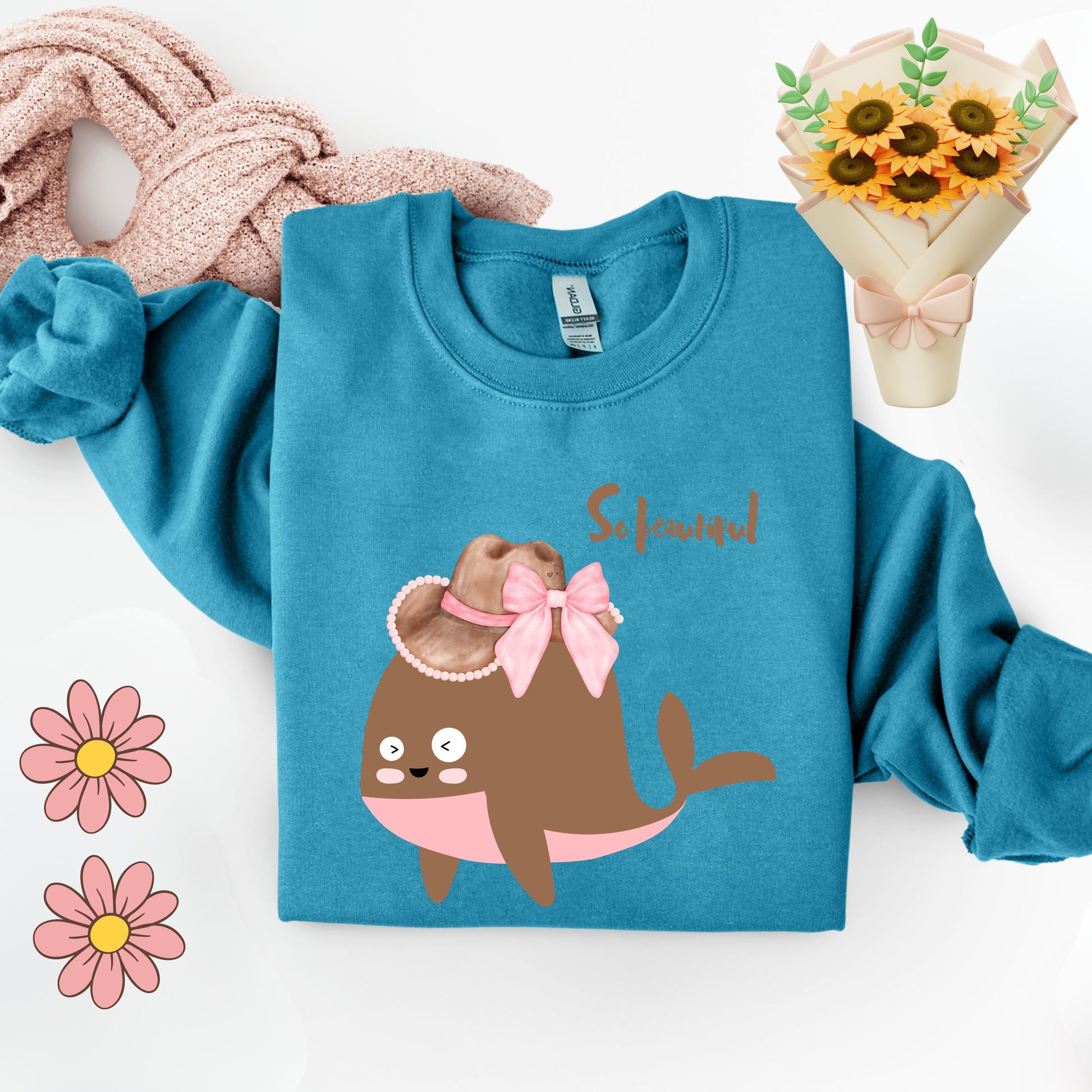 Whale wearing a cowboy hat with a pink bow Unisex Garment-Dyed Sweatshirt