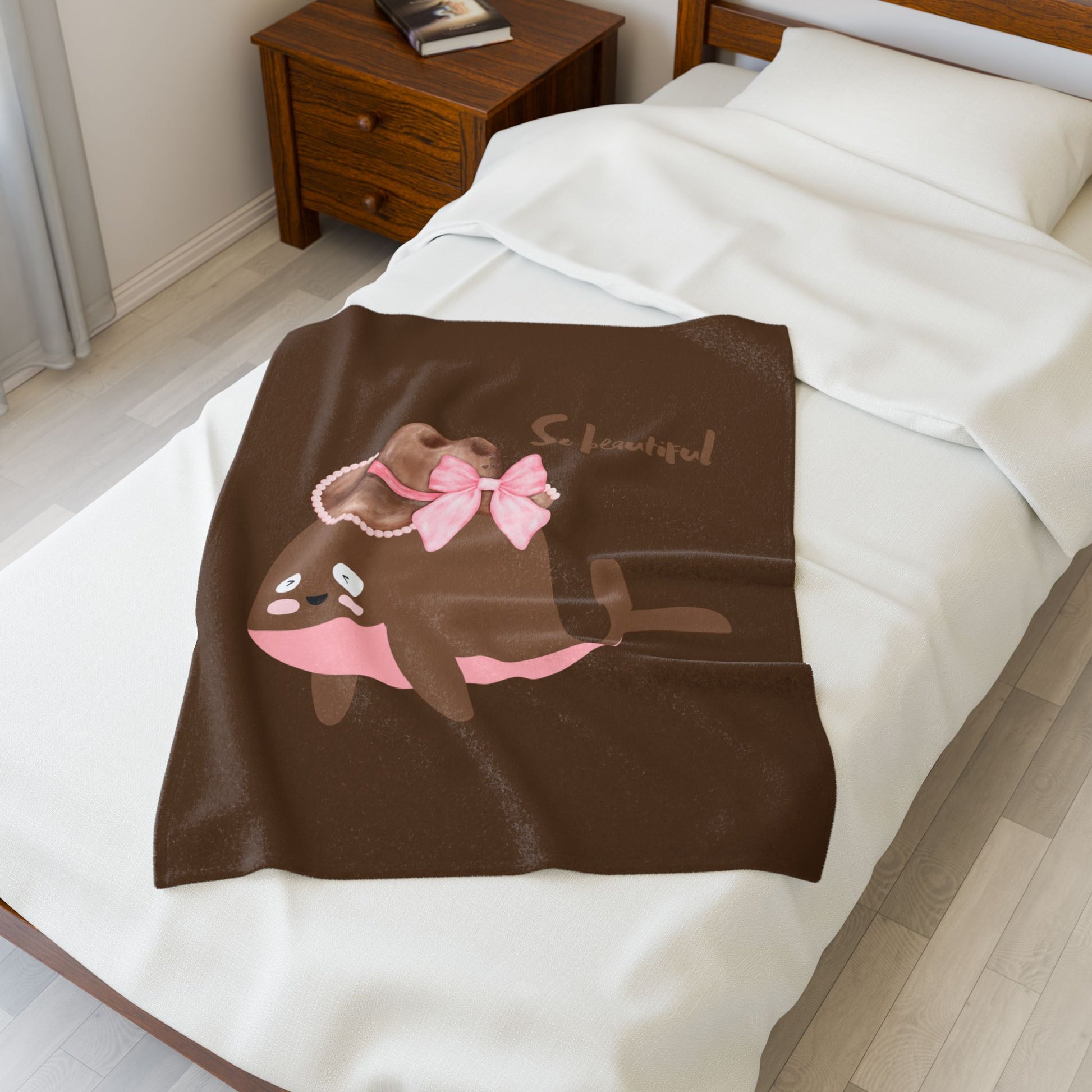 Whale wearing a cowboy hat with a pink bow Velveteen Plush Blanket