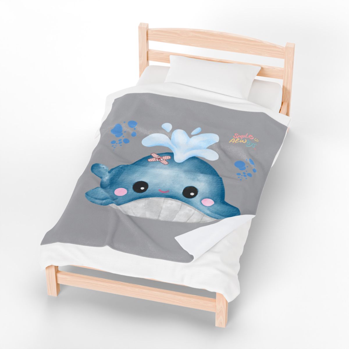 Whale with a bandage and bubble Velveteen Plush Blanket