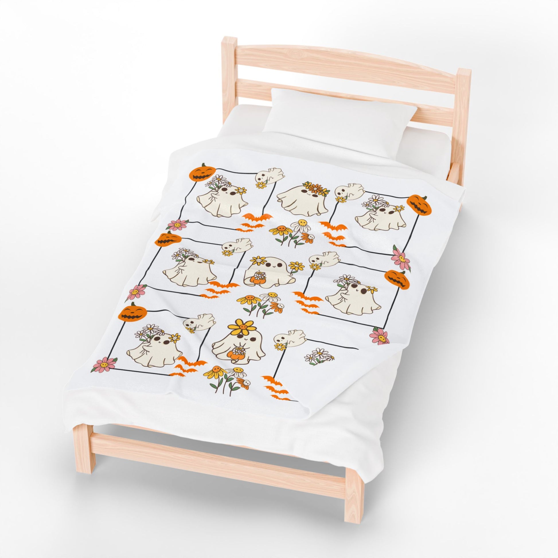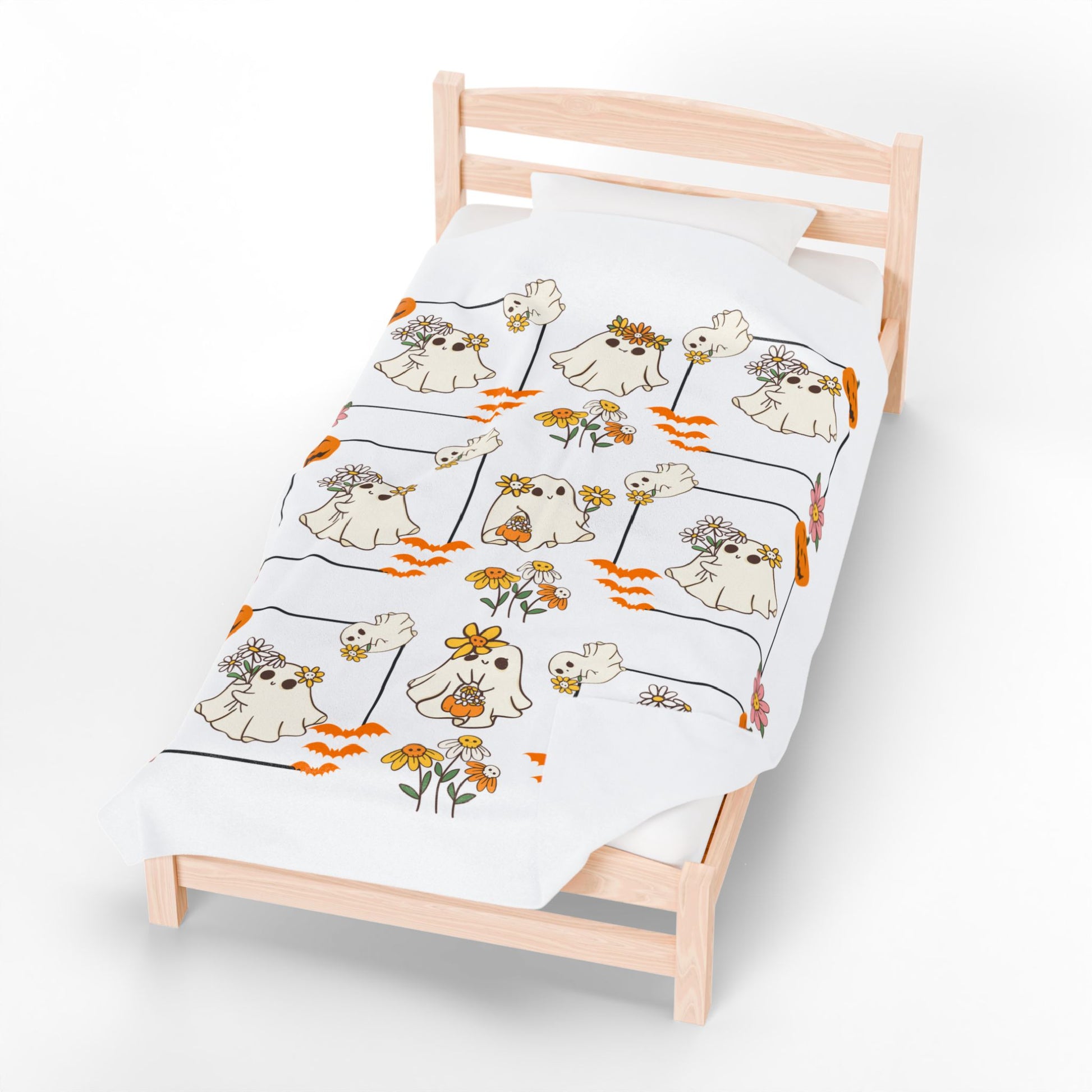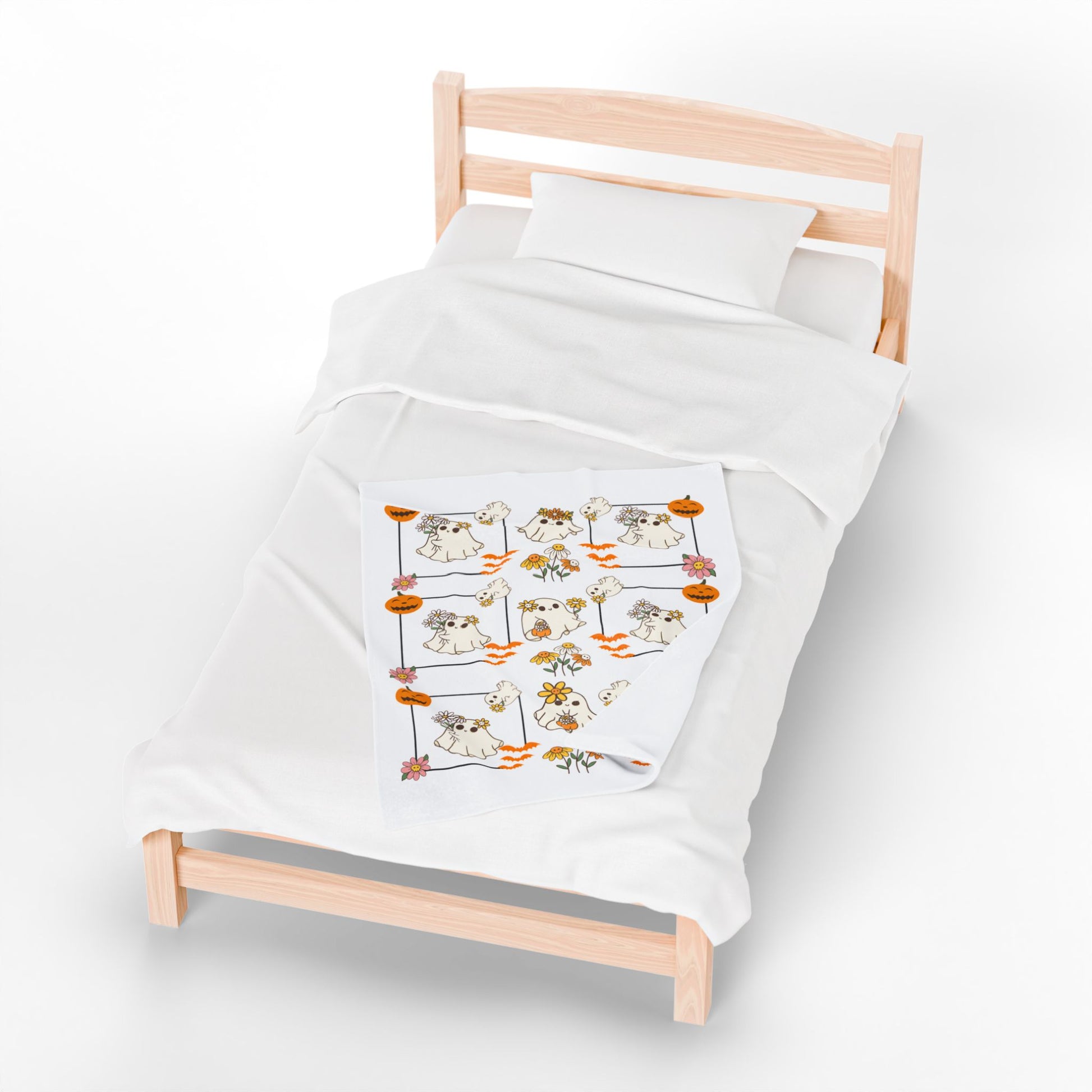Whimsical Ghosts Velveteen Plush Blanket | Cozy Halloween Decor, Gift for Kids & Teens, Soft Plush Throw, Cute Couch Accessory