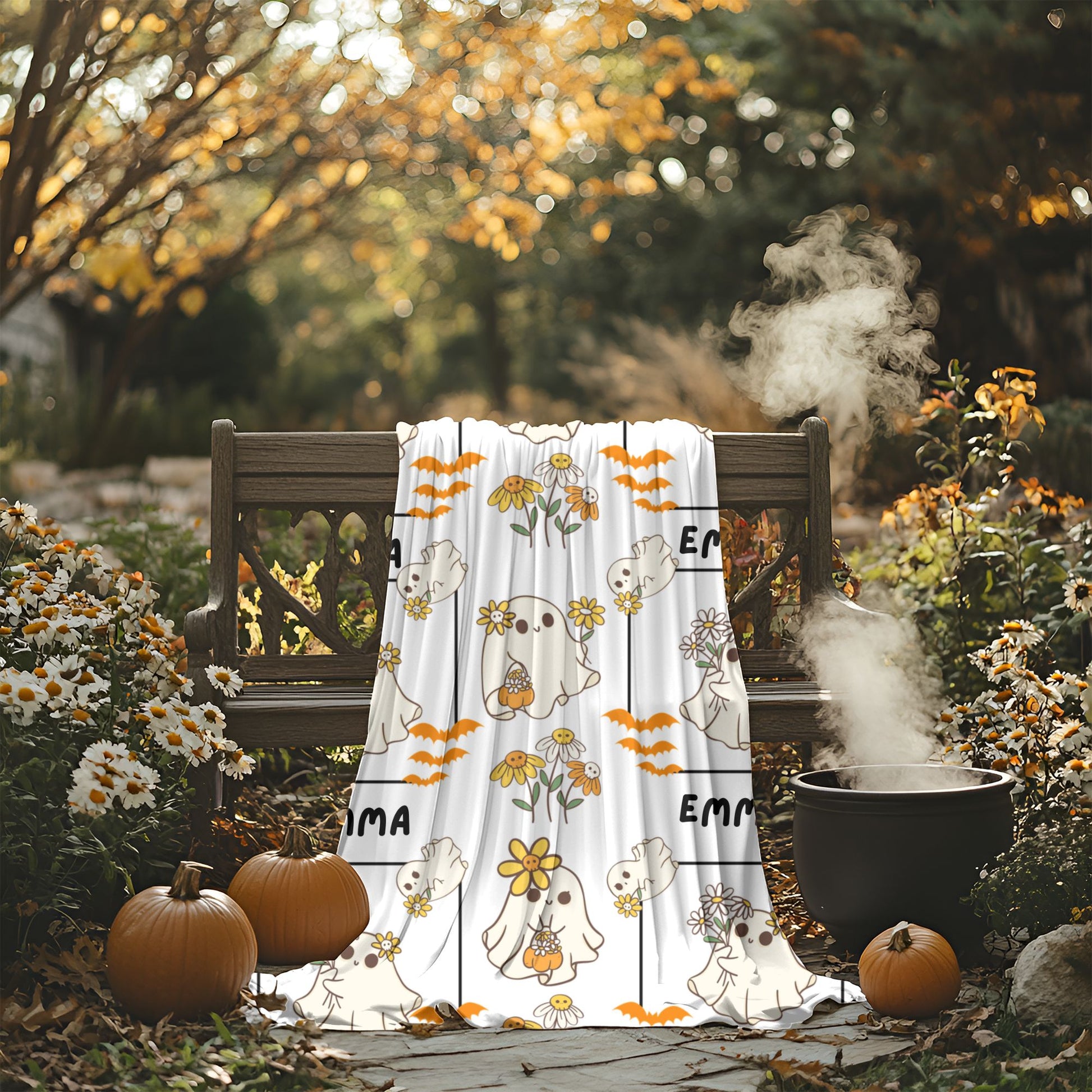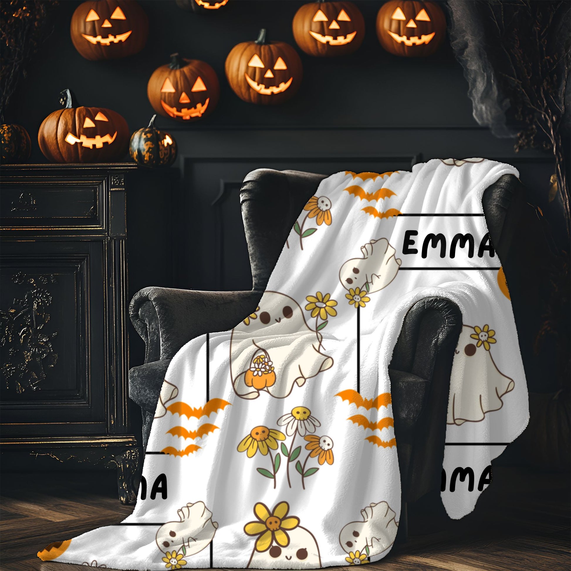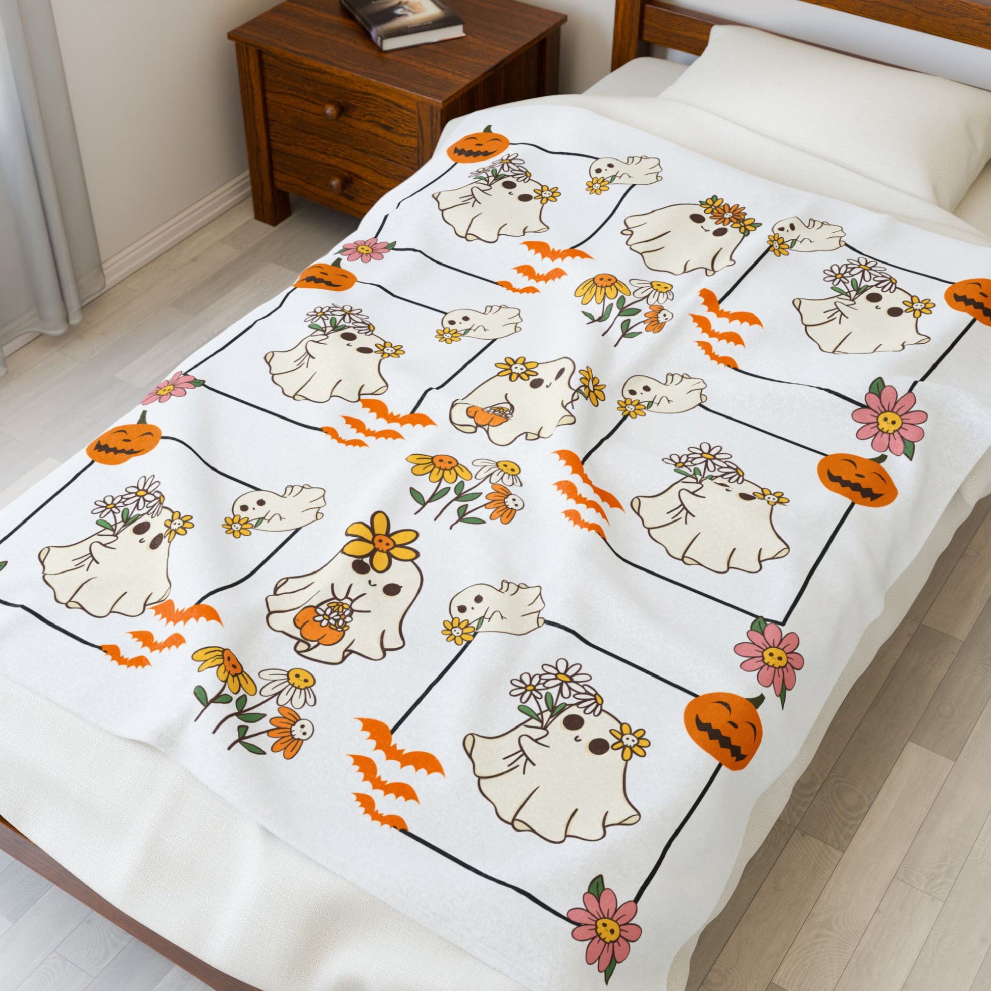 Whimsical Ghosts Velveteen Plush Blanket | Cozy Halloween Decor, Gift for Kids & Teens, Soft Plush Throw, Cute Couch Accessory