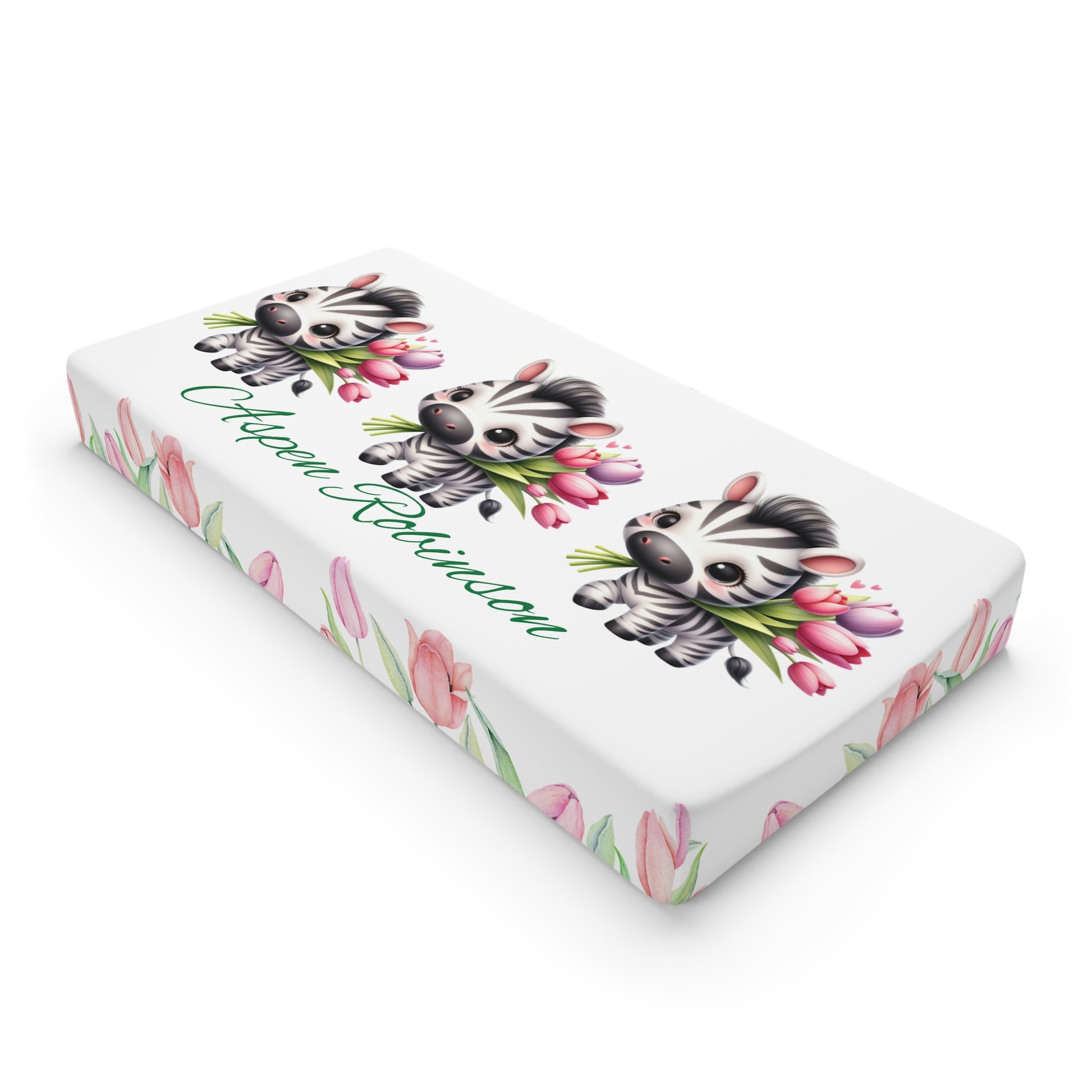Zebra Blossom Baby Changing Pad Cover — Personalized Floral Nursery Accessory